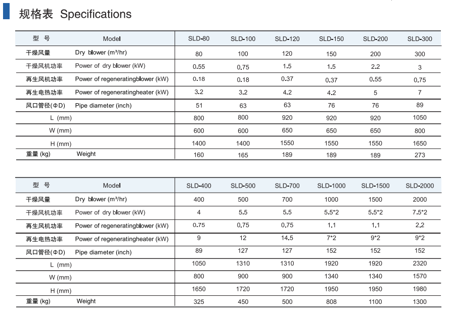 Injection Molding Machine SeriesDehumidifying & DryingFeeding & ConveyingCooling & HeatingGranulating & RecyclingDosing & MixingRobotAutomation SystemOptional Spare Parts Series 产品名称:Dehumidifying Dryer 产品型号:SLD-
