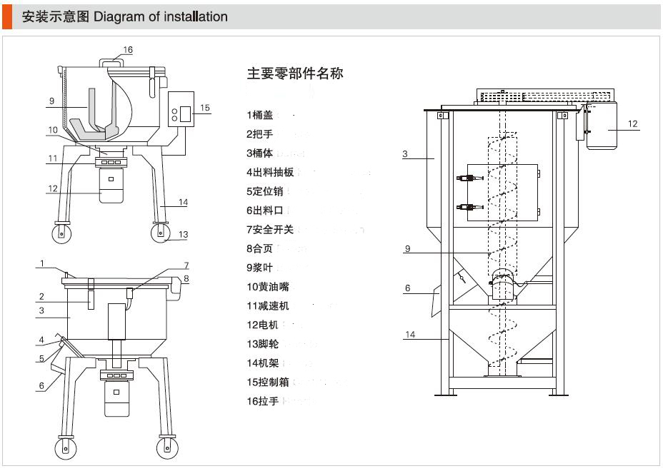 注塑机系列干燥除湿系列物料输送系列冷热温控系列粉碎回收系列物料混合系列机械手系列自动化系列选购附件系列 产品名称:立式混色机 产品型号:SSB ●双层不锈钢浆,立体设计,搅拌快速,均匀; ●可拆式浆叶,不锈钢搅拌室,清洗方便; ●电机直接驱动,搅拌效率高; ●直立式设计,占地少,卸料容易; ●自动停止装置,可设定0-30分钟自动停止; ●多重安全保护装置,确保操作者安全。
